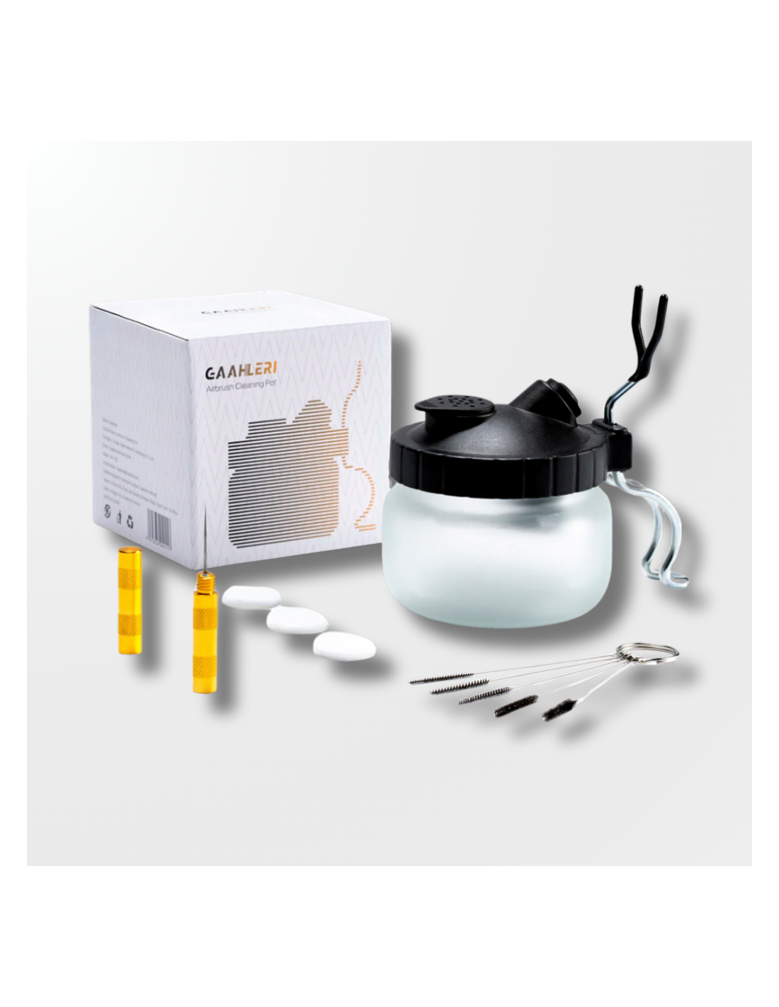 Airbrush cleaning kit, Gaahleri GA-40157, airbrush maintenance tool, cleaning pot, nozzle cleaning needles, complete size cleaning brushes, clogged pigment removal.