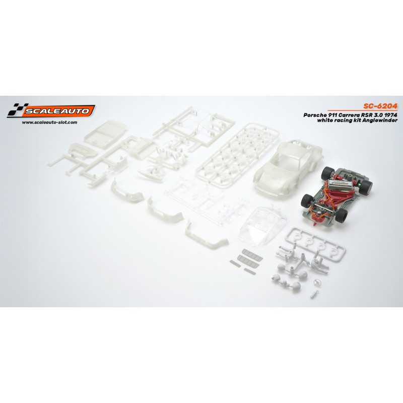 Kit completo del P911 RSR 1974 con carrocería en kit blanca sin pintar y chasis completamente montado.