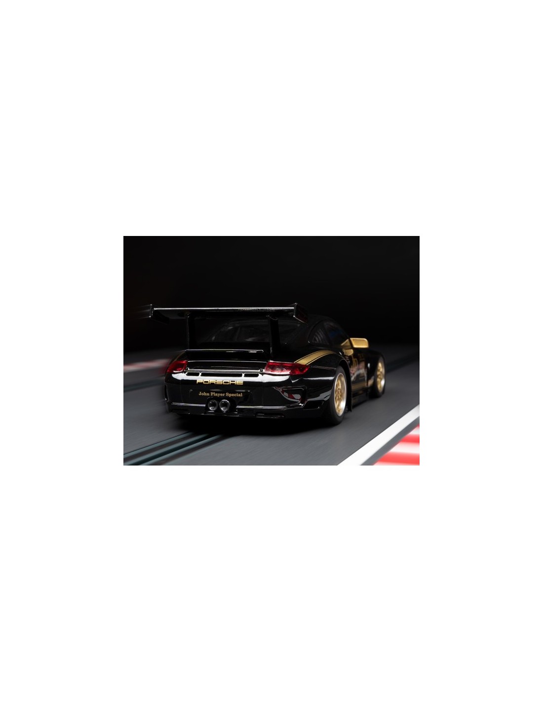 ¡Atención coleccionistas y pilotos! Te presentamos una verdadera joya que combina una de las decoraciones más icónicas de la historia del automovilismo con la máxima tecnología de competición en slot: el Porsche 997 en librea John Player Special (JPS).