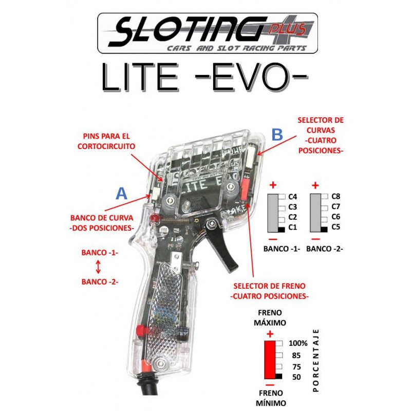 Esta es la evolución del primer modelo LITE y, como aquel, se ha creado para todo el que quiera iniciarse en el apasionante mundo del Slot, tanto en casa como en el club, con rendimiento "casi" de mando de mayores prestaciones.