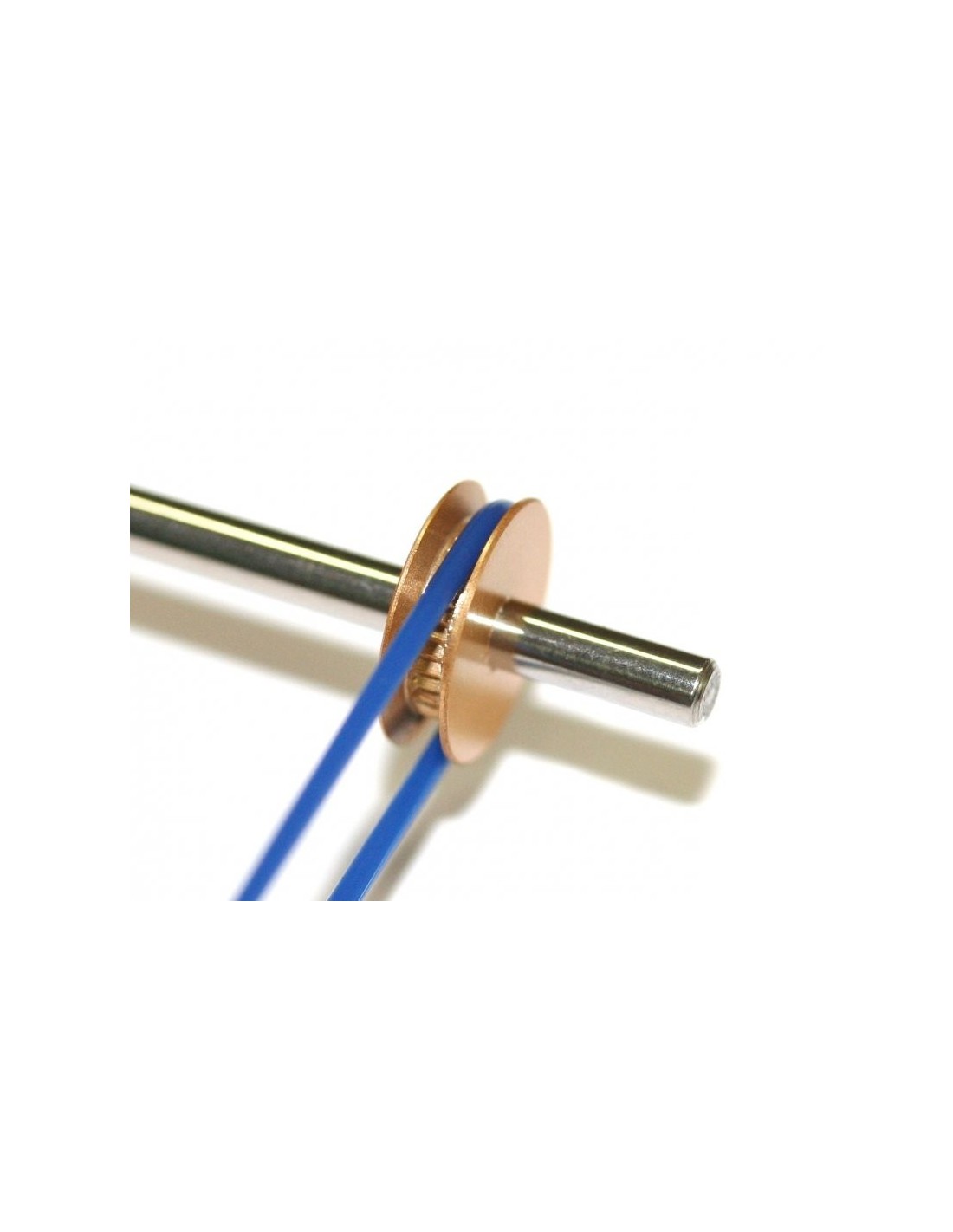 Esta polea, fabricada en Duraluminio y de diseño interior cónico, permite utilizar correas de 1 y 1,5 mm. de diámetro con total eficiencia.