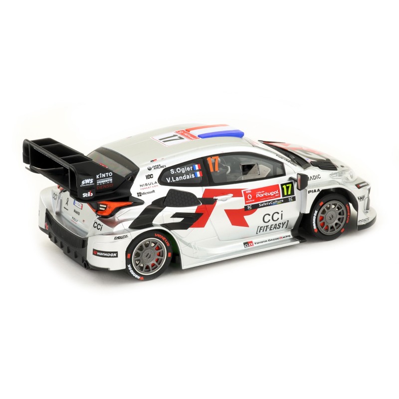 Esta réplica a escala 1:32 no es solo un coche, es un tributo a la maestría del piloto francés. El modelo captura cada detalle del vehículo del equipo Toyota Gazoo Racing WRT, desde la agresiva carrocería aerodinámica hasta la fiel reproducción de la decoración de la edición portuguesa y el icónico dorsal Nº17.