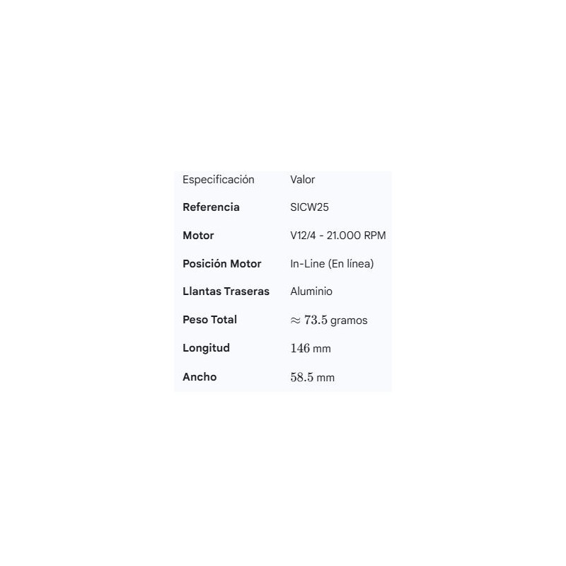 Motor de Alto Rendimiento: Equipado con el motor Slot.it V12/4 de 21.000 RPM, configurado en posición In-Line (en línea). Esta disposición es ideal para una entrega de potencia equilibrada y una excelente respuesta en pista.